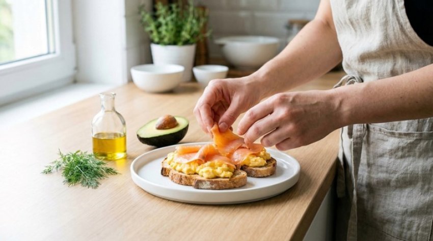 Ovaj savjet je lako implementirati u svakodnevnu prehranu. Jaja se mogu pripremiti u tiganju sa maslinovim ili avokadovim uljem, ili poslužiti sa avokadom koji je bogat mononezasićenim mastima. Chia ili lanene sjemenke i dimljeni losos također mogu biti dobri dodaci, koji daju dodatne masti i vitamin D.